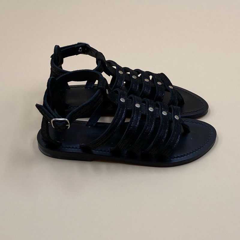 Sandales plates K.JACQUES, modèle AGOPOS EBENE en cuir Tejus Noir pointure 35.