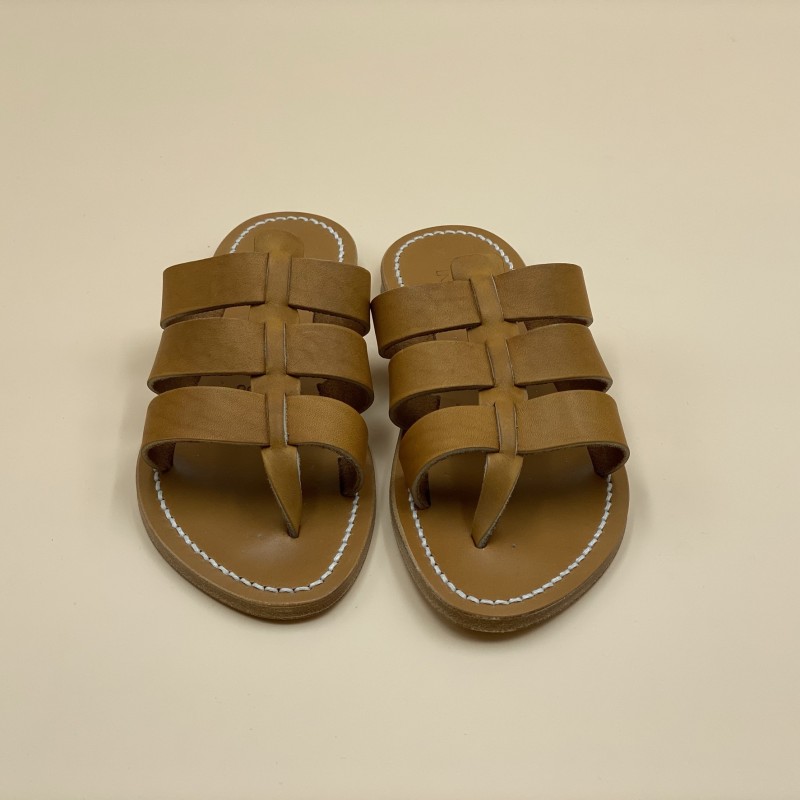 Les sandales K.Jacques sont fabriquées à la main par nos artisans à Saint-Tropez en France. Nos tropéziennes sont composées d'une semelle en cuir et d'un talon en caoutchouc hévéa naturel.