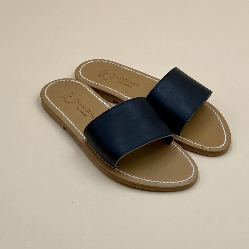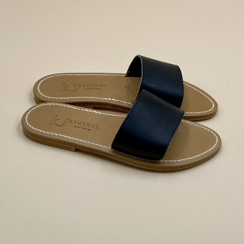 Sandales plates K.JACQUES, modèle ANACAPRI en cuir Pul Noir, pointure 37.
