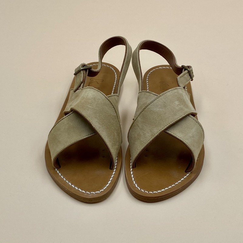 Sandales plates K.JACQUES, modèle OSORNO en cuir Velours Sultan, pointure 37.