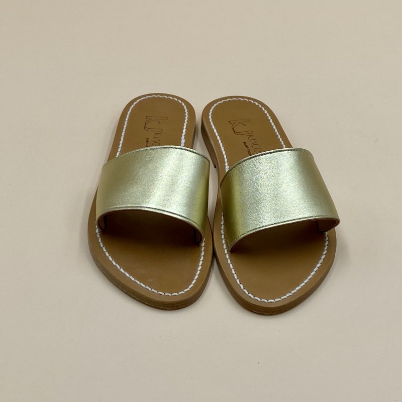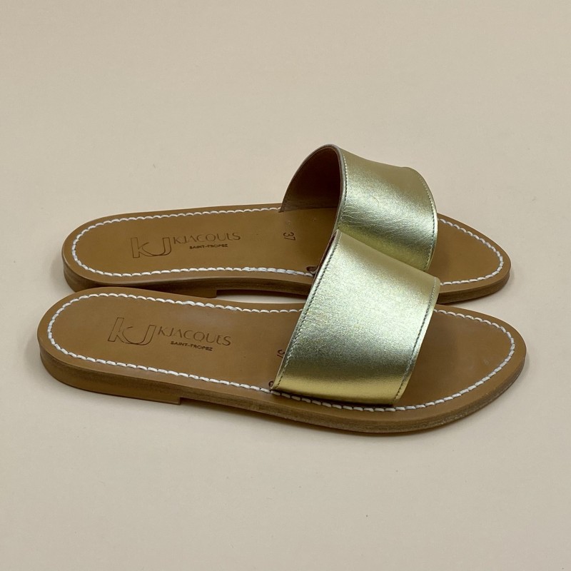 Sandales plates K.JACQUES, modèle ANACAPRI en cuir Métal Doré pointure 37.