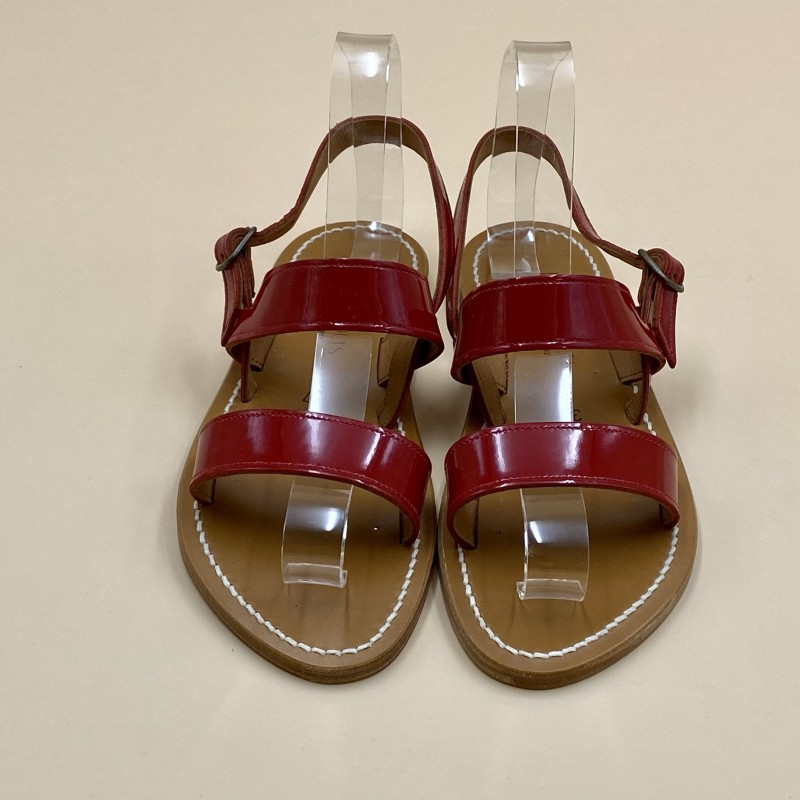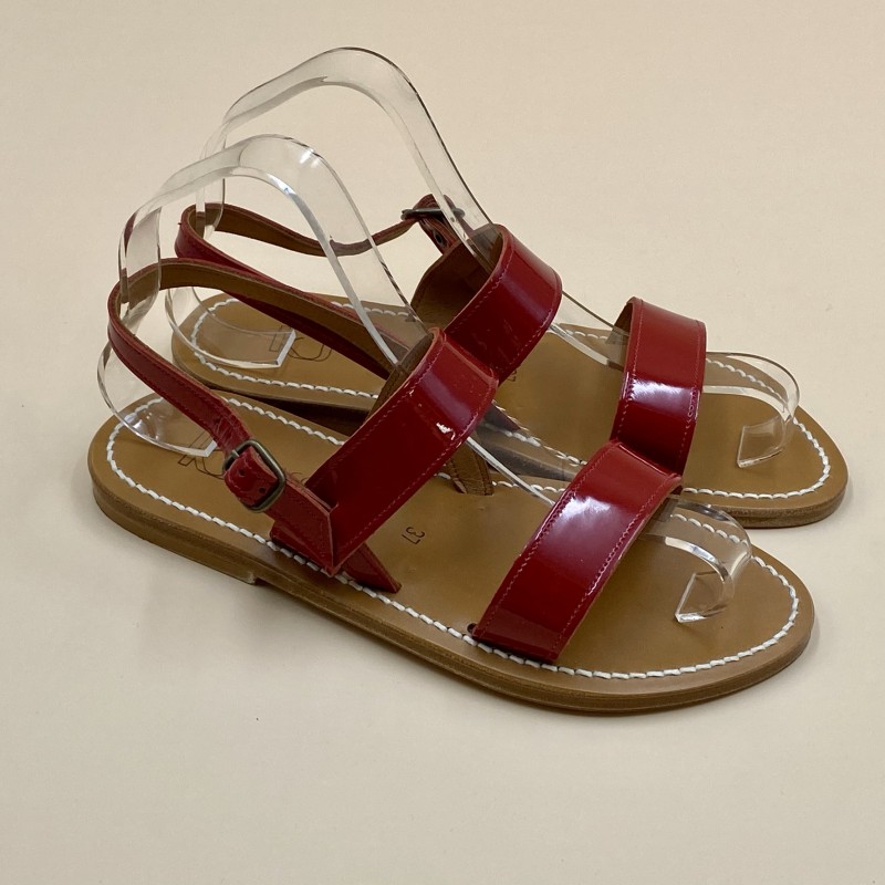 Sandales plates K.JACQUES, modèle BARIGOULE en cuir Vernis Rouge, pointure 37.
