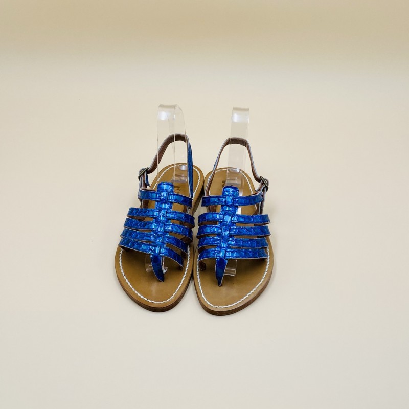 Sandales plates K.JACQUES, modèle HOMERE en cuir Meji Bleu pointure 38.