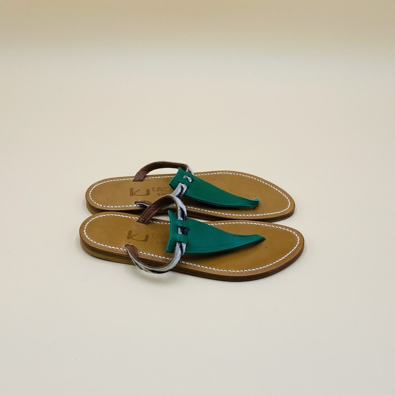 Les sandales K.Jacques sont fabriquées à la main par nos artisans à Saint-Tropez en France. Nos tropéziennes sont composées d'une semelle en cuir et d'un talon en caoutchouc hévéa naturel.