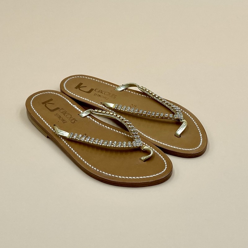 Sandales plates K.JACQUES, modèle CARTHAGE en cuir Métal Doré, pointure 35.