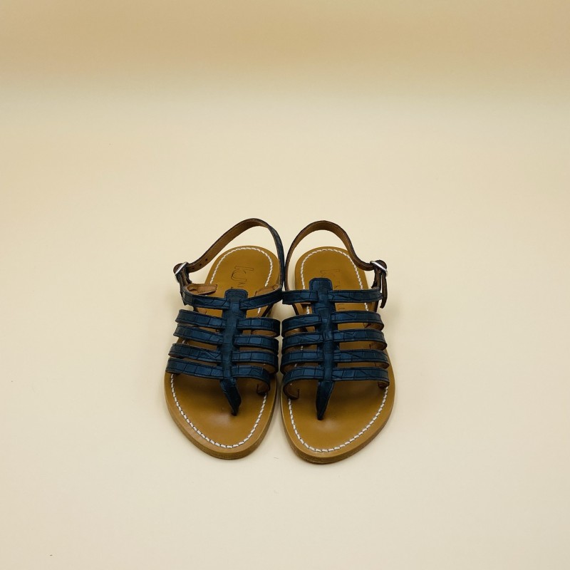 Sandales plates K.JACQUES, modèle HOMERE en cuir Tiles Noir pointure 38.