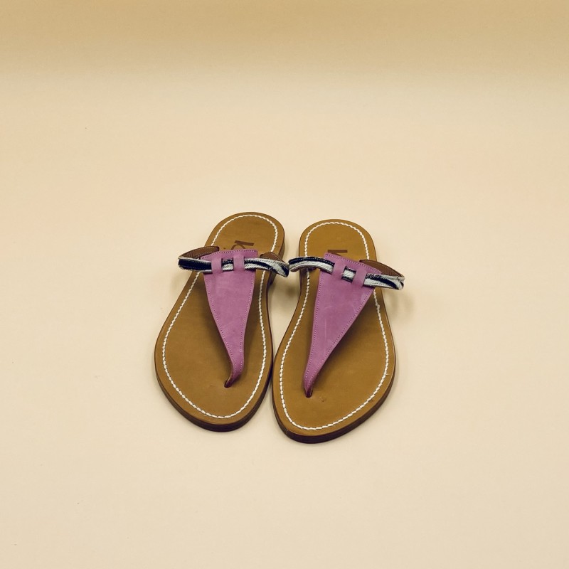 Sandales plates K.JACQUES, modèle COLUMBIA en cuir Nubuck Rose et Imprimé Zèbre, pointure 38.