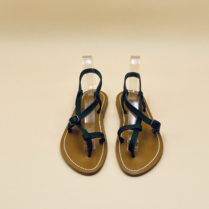 Sandales plates K.JACQUES, modèle JIVAL en cuir Pul Kaki , pointure 39.