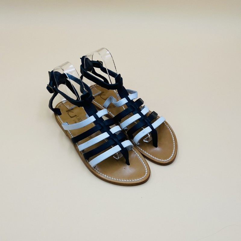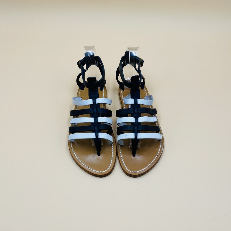 Sandales plates K.JACQUES, modèle DARIUS en cuir Pul Marine Pul Blanc pointure 39.