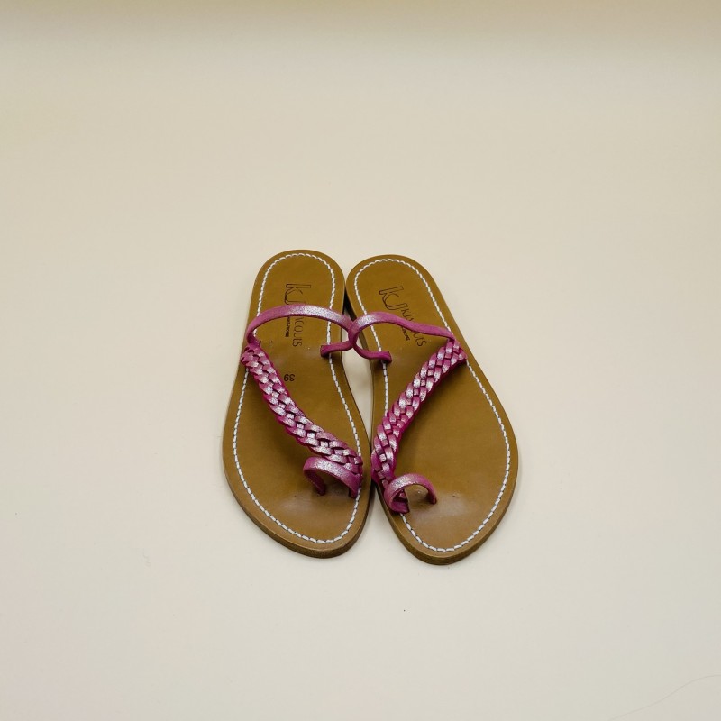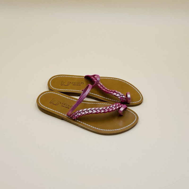 Sandales plates K.JACQUES, modèle SEPTINE en cuir Velours Métal Buganvilla, pointure 39.