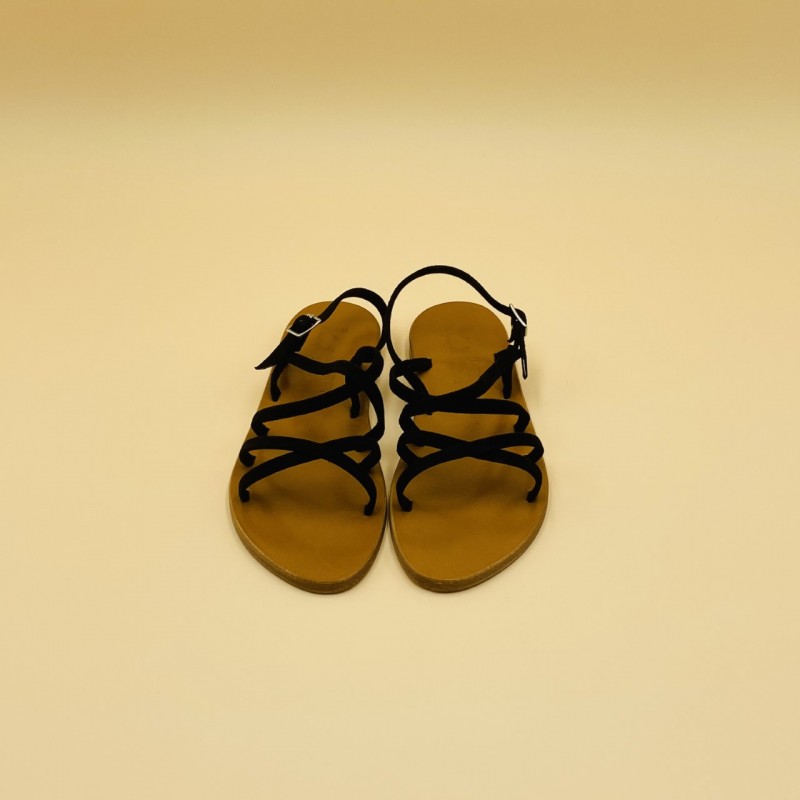 Sandales plates K.JACQUES, modèle DATURA EPURE Naturel en cuir Velours Noir, pointure 36.