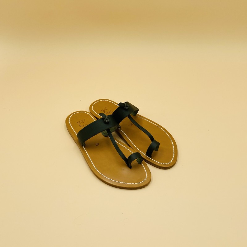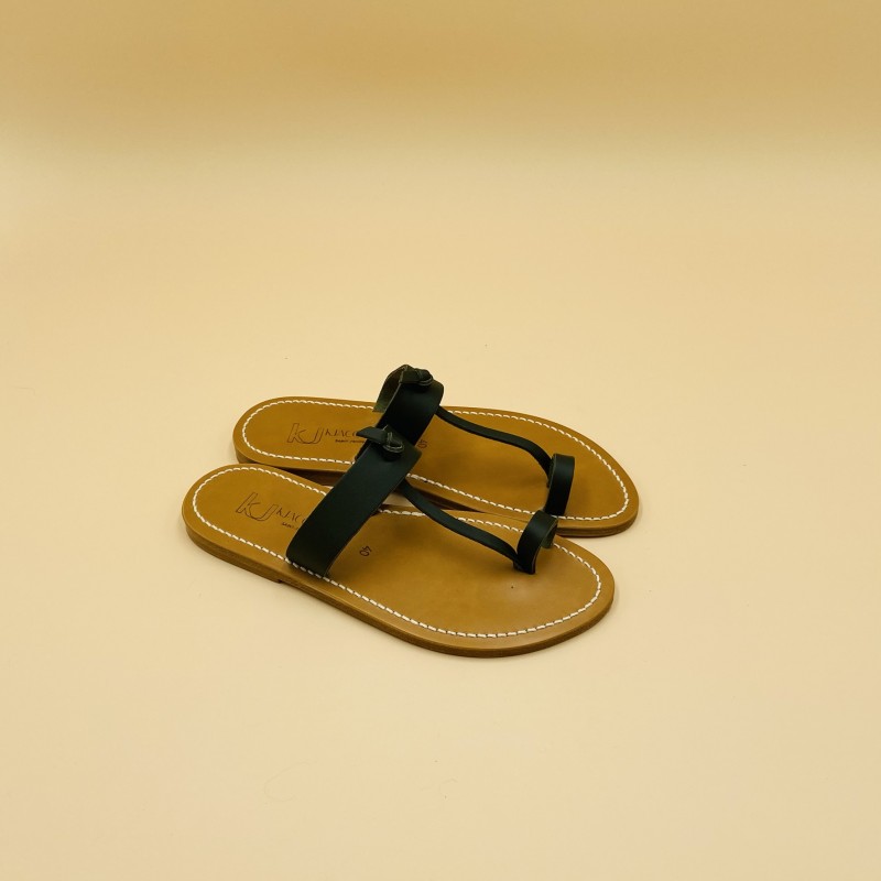 Sandales plates K.JACQUES, modèle GANGES en cuir Pul Kaki , pointure 40.