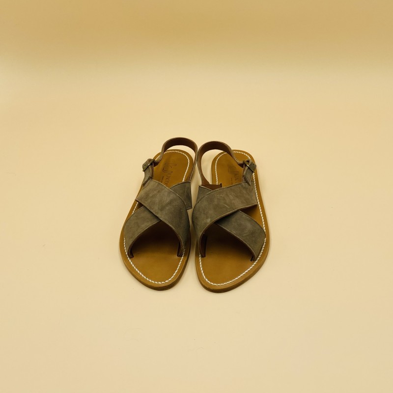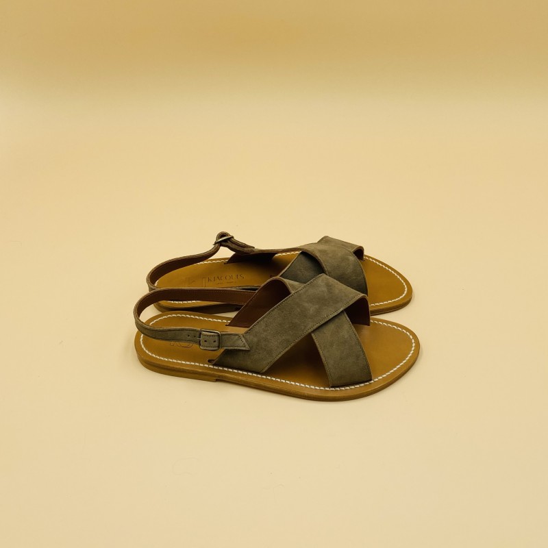 Sandales plates K.JACQUES, modèle OSORNO en cuir Velours Fango, pointure 40.