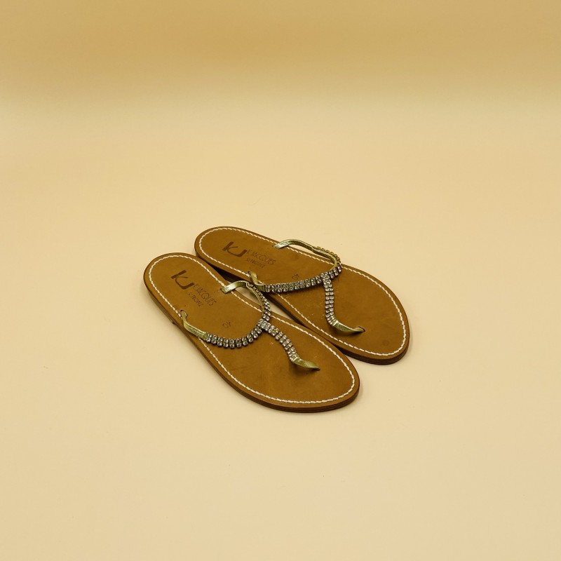 Les sandales K.Jacques sont fabriquées à la main par nos artisans à Saint-Tropez en France. Nos tropéziennes sont composées d'une semelle en cuir et d'un talon en caoutchouc hévéa naturel.