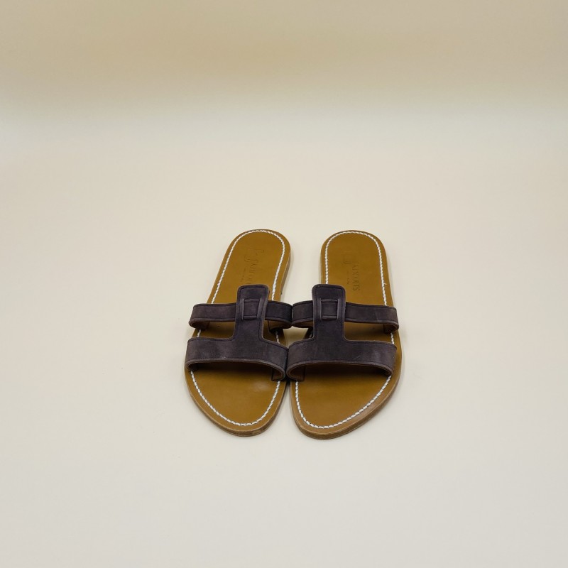 Sandales plates K.JACQUES, modèle THANOS en cuirs Velours Cocoa, pointure 40.
