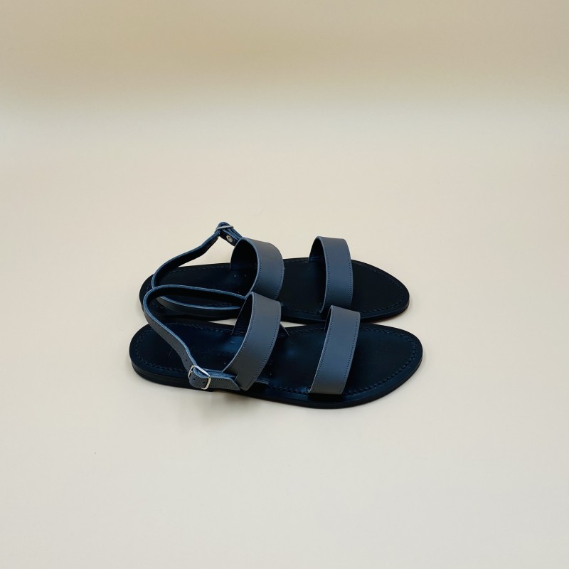 Sandales plates K.JACQUES, modèle BARIGOULE semelle EBENE en cuir Pul Gris pointure 40.
