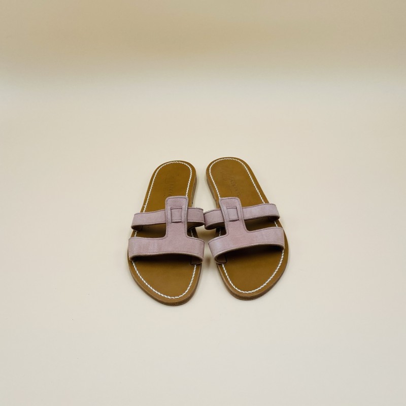 Sandales plates K.JACQUES, modèle THANOS en cuirs Velours Rose Dawn, pointure 40.