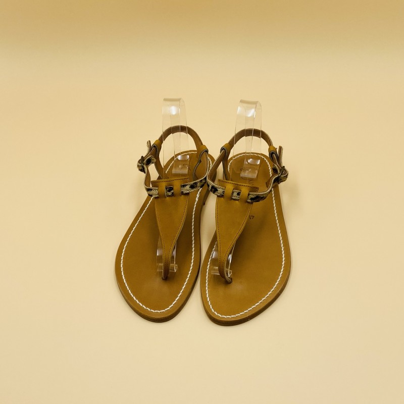 Sandales plates K.JACQUES, modèle CORIOLAN en cuir Pul Naturel et Imprimé Leopard, pointure 41.