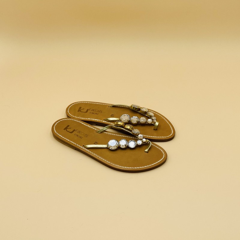 Sandales plates K.JACQUES, modèle CLARISSE en cuir Métal Doré, pointure 41.