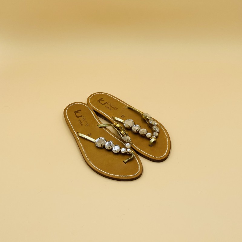 Les sandales K.Jacques sont fabriquées à la main par nos artisans à Saint-Tropez en France. Nos tropéziennes sont composées d'une semelle en cuir et d'un talon en caoutchouc hévéa naturel.