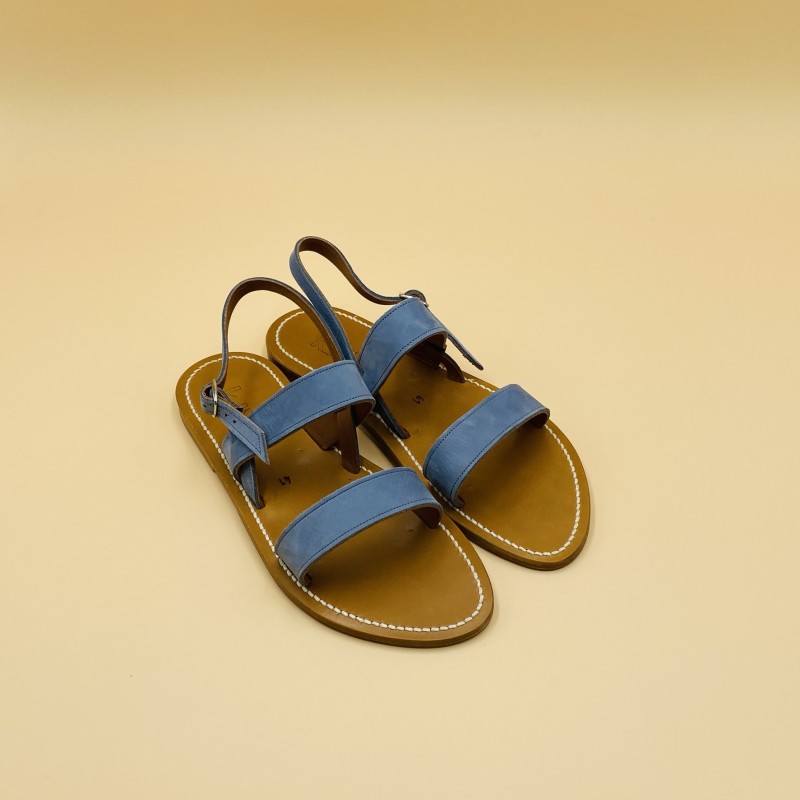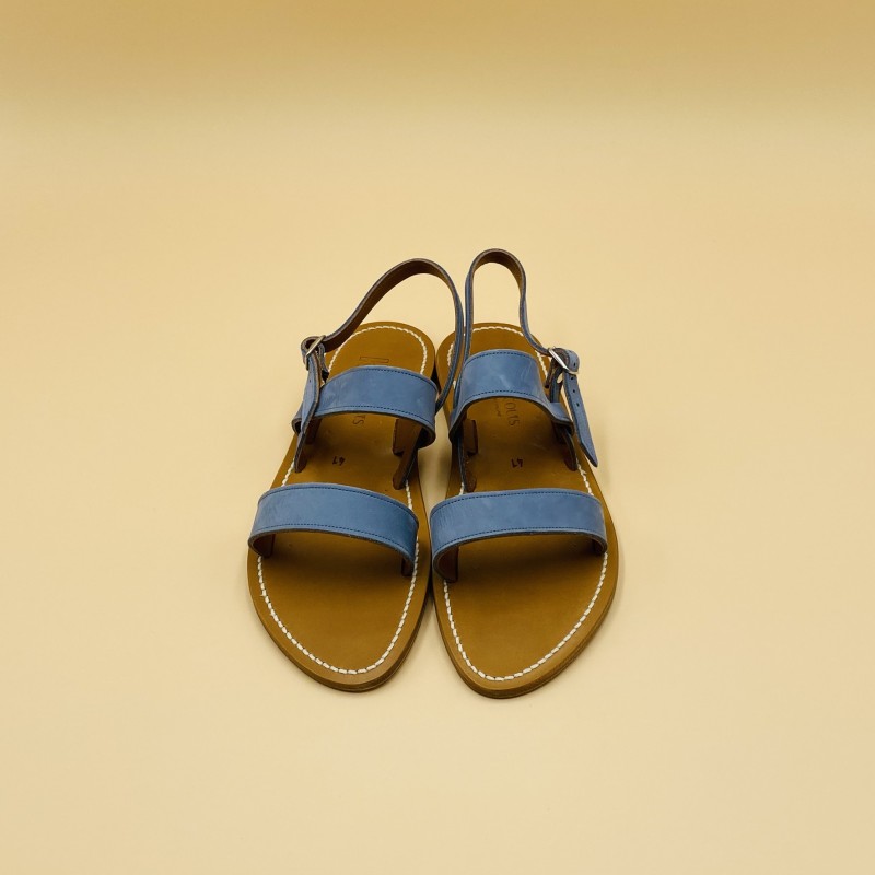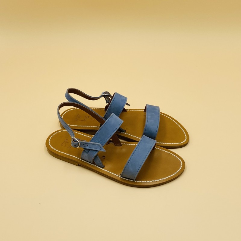 Sandales plates K.JACQUES, modèle BARIGOULE en cuir Nubuck Jeans, pointure 41.