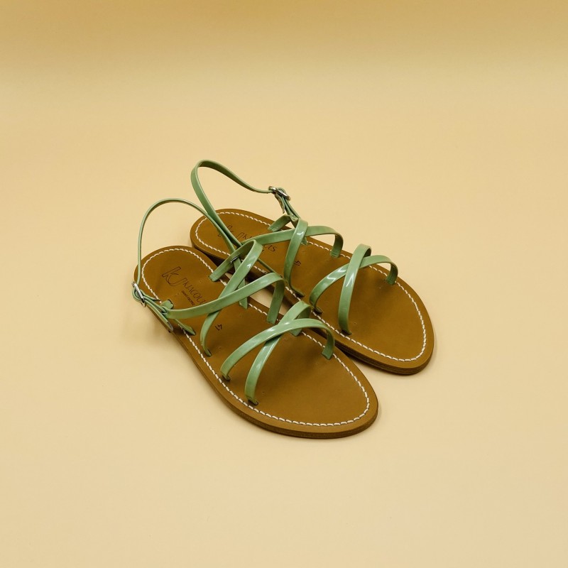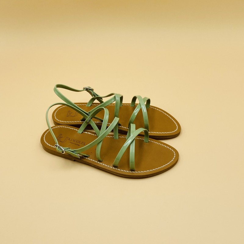 Les sandales K.Jacques sont fabriquées à la main par nos artisans à Saint-Tropez en France. Nos tropéziennes sont composées d'une semelle en cuir et d'un talon en caoutchouc hévéa naturel.