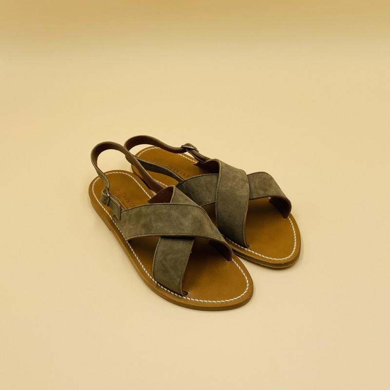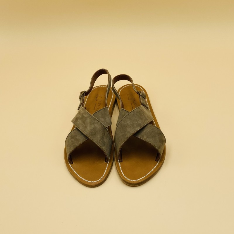 Sandales plates K.JACQUES, modèle OSORNO en cuir Velours Fango, pointure 42.