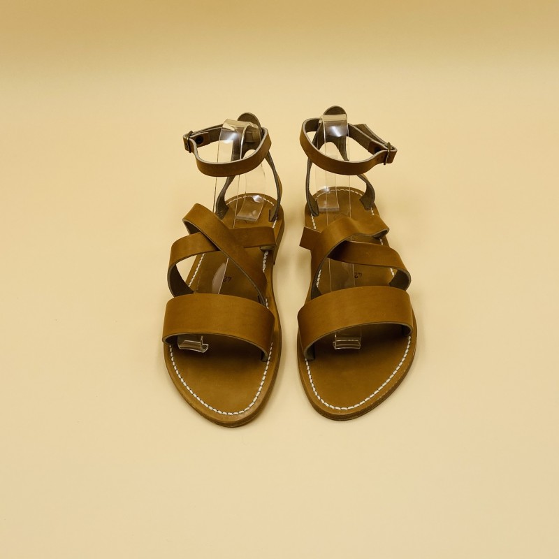 Sandales plates K.JACQUES, modèle AQUITAINE en cuir Pul Naturel, pointure 42.