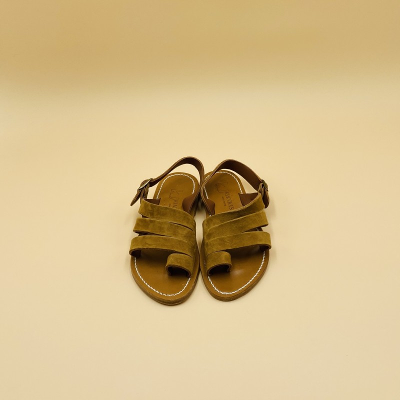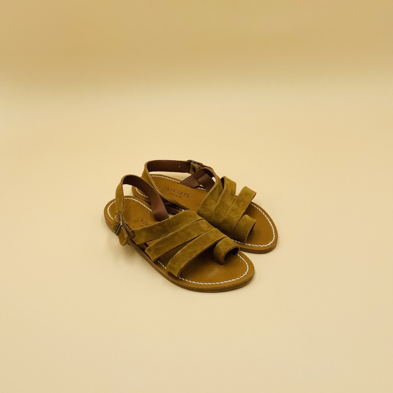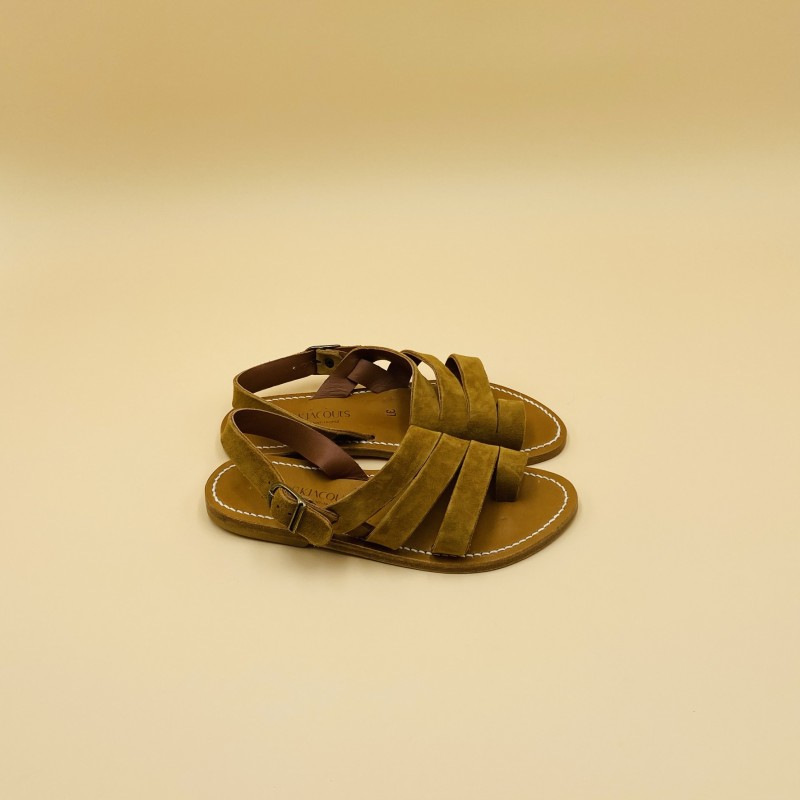 Sandales plates K.JACQUES, modèle FRODON en cuir Velours Bran, pointure 37.