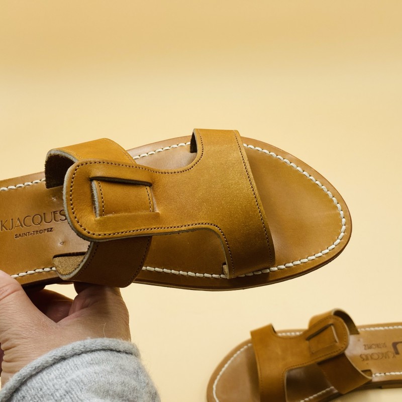 Sandales plates K.JACQUES, modèle RHEA en cuir pul naturel, pointure 38.