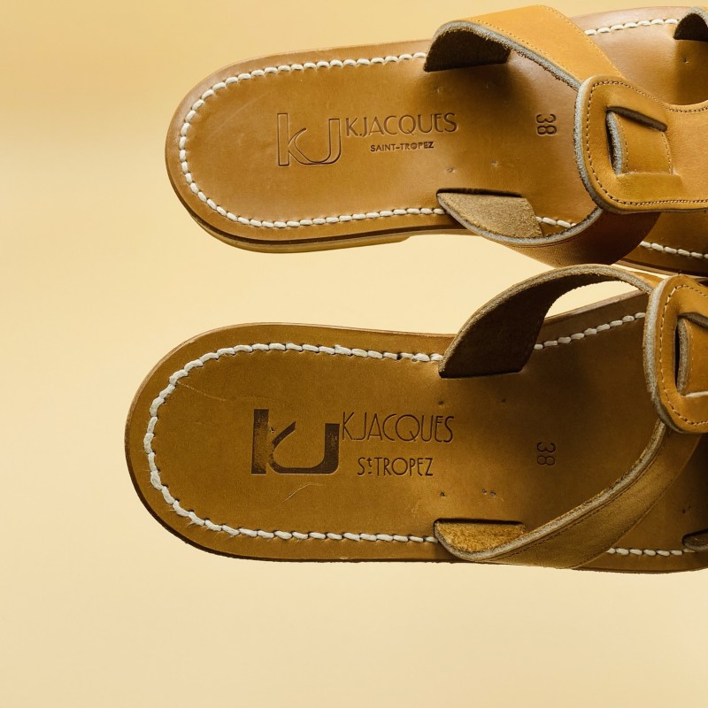 Les sandales K.Jacques sont fabriquées à la main par nos artisans à Saint-Tropez en France. Nos tropéziennes sont composées d'une semelle en cuir et d'un talon en caoutchouc hévéa naturel.